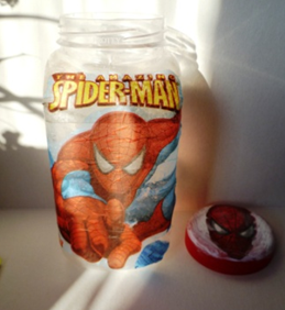 Вырезаем из салфеток картинки, снимаем верхний слой и приклеиваем их на баночку.