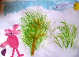 Если взять перо, им можно рисовать деревья и траву. Для этого перо слегка обмакните в краску и поставьте отпечатки на листе бумаги легкими прикосновениями. Дорабатывайте композицию, как подсказывает ваше воображение.
